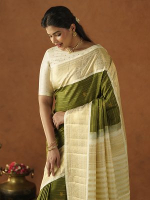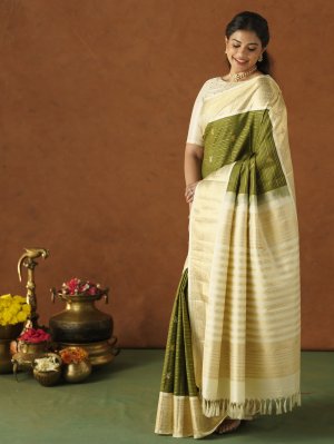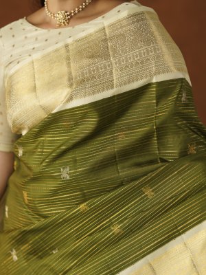 Mehandi Green Kanjeevaram Silk Saree With Off-white Border