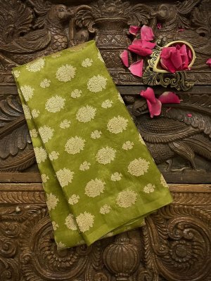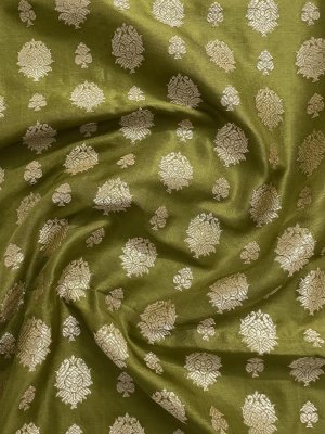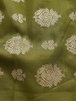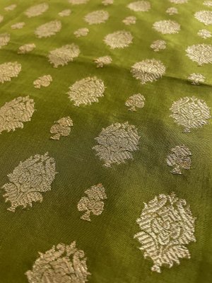 This Handwoven Mehendi Green Banaras Silk Blouse has pure zari butties spread all over.