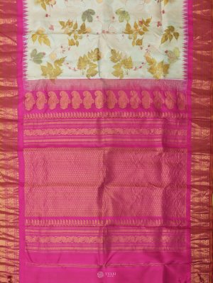Air the saree out every 4–5 months and occasionally change its folds. Preferably, keep the saree rolled. Store in a cotton bag and dry clean only.