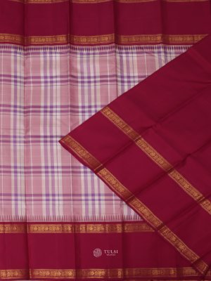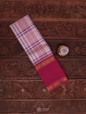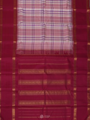 This Multi-Color Checked Kanjeevaram Silk Saree features vibrant checks on the body with a rich Pink border. The striking color contrast and luxurious silk fabric make it an ideal choice for any celebration.