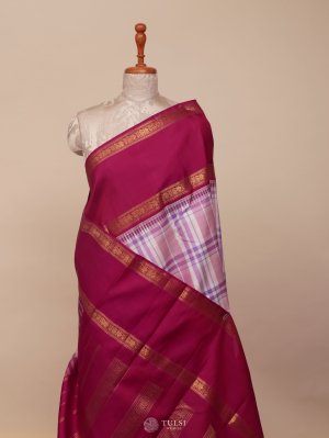 Multi Color Checked Kanjeevaram Silk Saree With Pink Border