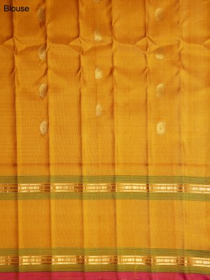 Mustard Yellow Gadwal Silk Saree With Pink Border