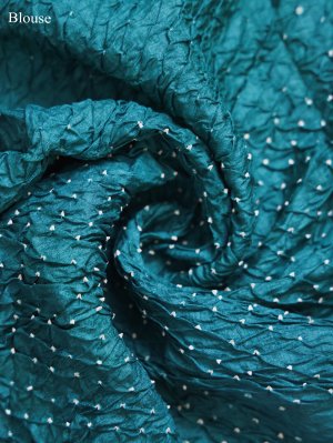 Turquoise Blue Bandhini Silk Saree With Chikankari Embroidery