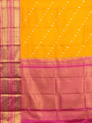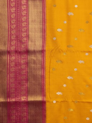 Mustard Kanjeevaram Twill Saree With Rani Pink Border
