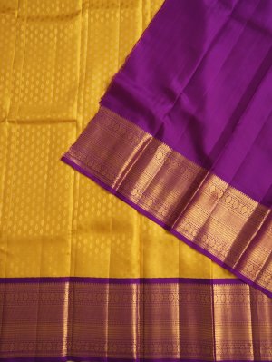 Mustard Yellow Kanjeevaram Silk Pavadai with Purple Border
