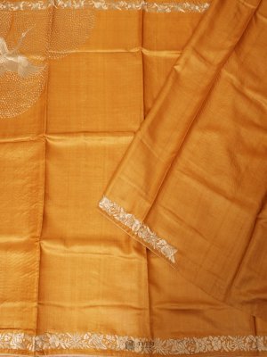 This Beautiful Tussar Silk Saree features a shade of Mustard Yellow all over the body and has a floral embroidery design on the border, which makes this saree perfect for every occasion.