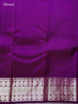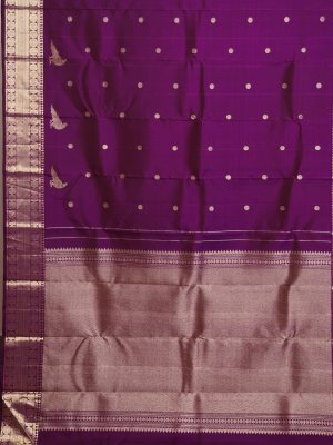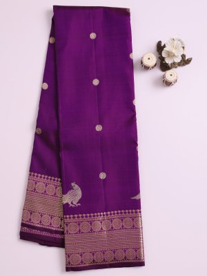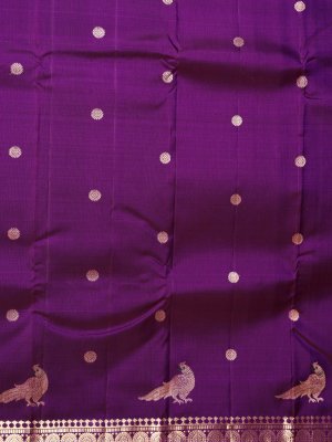 Dark Purple Veldhari Kanjeevaram Silk Saree With Reddish Orange Border