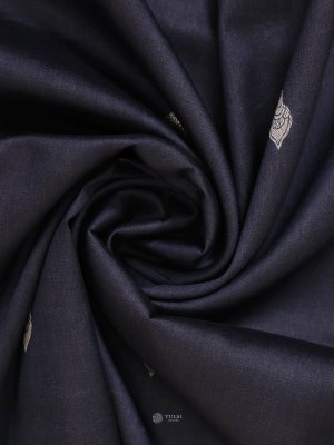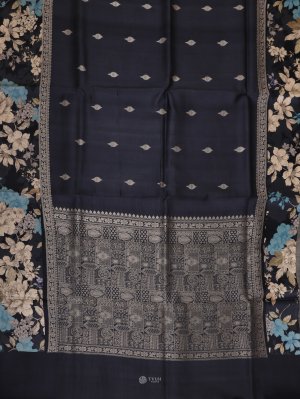 Navy Blue Printed Tussar Silk Saree With Satin Border