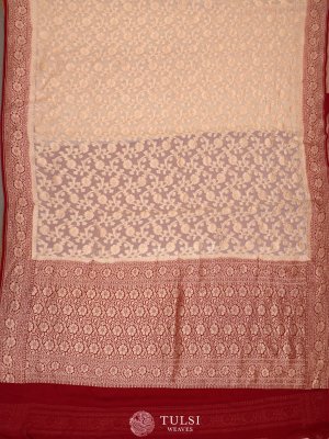 Off White Banaras Georgette Silk Saree