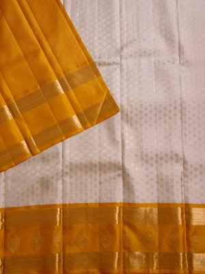Off-White Kanjeevaram Silk Pavadai with Yellow Border