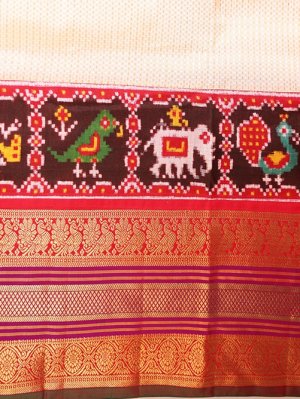 Off-white Kanjeevaram Silk Saree With Patan Patola Border