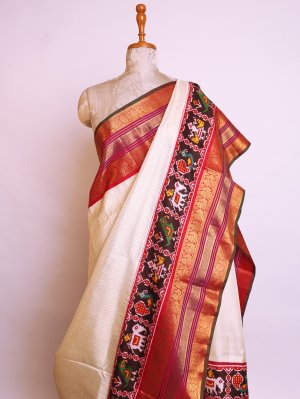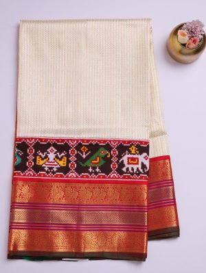 Off White Kanjeevaram Silk Saree With Red Patan Patola Border