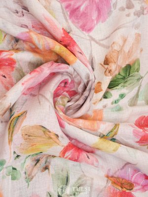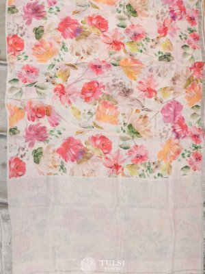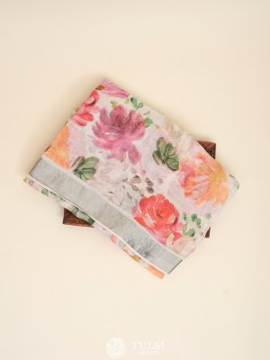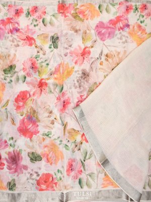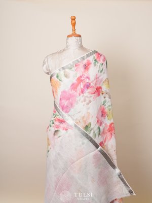 This Off-White floral-printed linen saree is ideal for any special event. Crafted from soft linen, it drapes gracefully and offers a comfortable fit. The lively floral designs bring a hint of nature's charm.