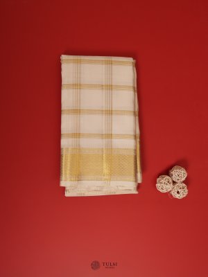 Off-White Silk Dhoti and Vasthram With Gold Self Zari Border