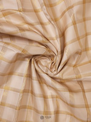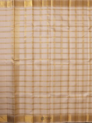 The Off White Silk Dhoti features elegant zari checks and a refined self zari border. This traditional attire combines the subtlety of Off White silk with the intricate detailing of zari, making it perfect for any special occasion.