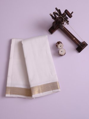 Off White Silk Dhoti and Vasthram with Zari Border