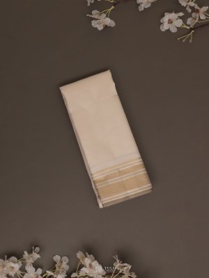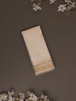 This Off White Silk Dhoti reflects understated grace and tradition. The serene White base is enhanced with a soft zari border, lending it a subtle hint of color without overpowering its simplicity.