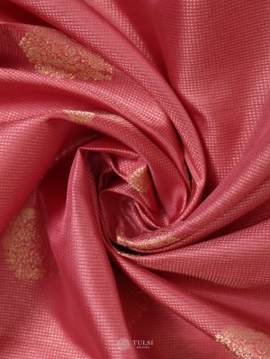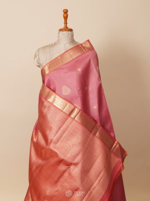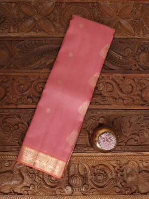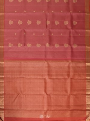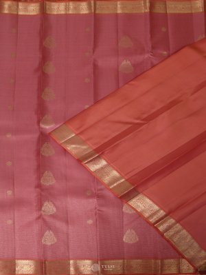 This Onion Pink Kanjeevaram Silk Saree is a beautiful blend of tradition and softness. Woven from pure silk, it features a gentle Onion Pink tone that adds a modern, understated charm. The classic zari border and pallu bring out its rich heritage, making it perfect for elegant occasions and special celebrations.