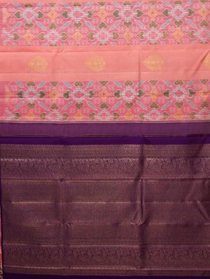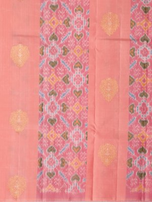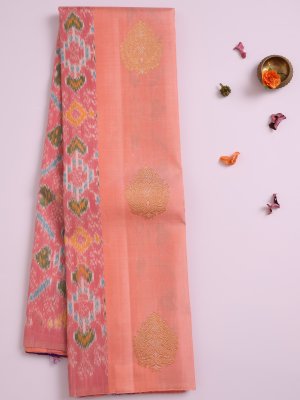 Peach Kanjeevaram Ikat Silk Saree With Zari Butta