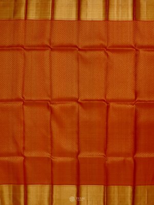 This Orange Kanjeevaram Silk Blouse exudes rich traditional charm with its intricate weave and vibrant hue. This exquisite piece is finished with a lustrous golden zari border, perfect for elevating any festive or bridal look.