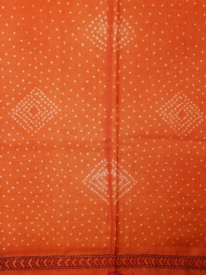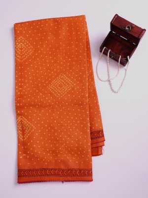 Orange Printed Tussar Silk Saree