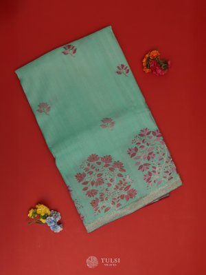 Pastel Green Banaras Tussar Georgette Silk Saree