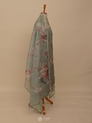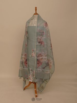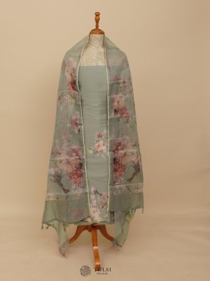 This Pastel Green Chanderi Salwar Material captures timeless sophistication with its soft texture and graceful drape. The fabric showcases a delicate floral weave paired with a beautifully patterned dupatta, creating a balanced blend of tradition and style.
