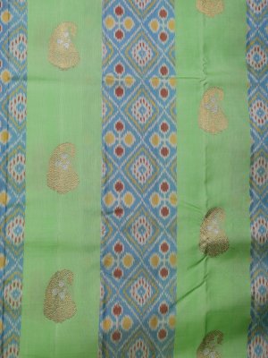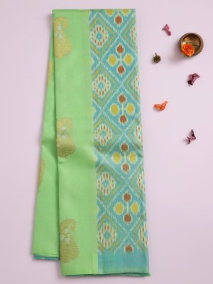 Pastel Green Kanjeevaram Ikat Silk Saree With Zari Butta