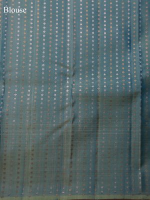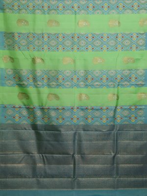 Bluish Green Kanjeevaram Ikat Silk Saree With Zari Butta