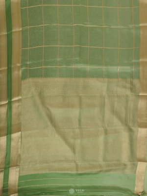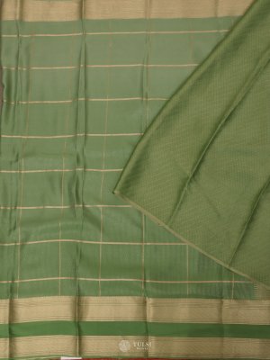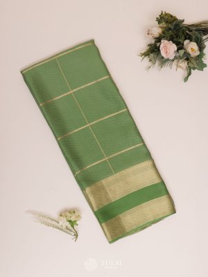 This Pastel Green Mysore Silk Saree stands out with its elegant body checks that add depth and sophistication to its design. The lustrous Pink silk, paired with subtle zari detailing, enhances its timeless charm.