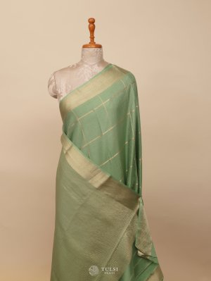Sea Green Mysore Silk Saree With Banaras Georgette Blouse