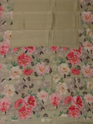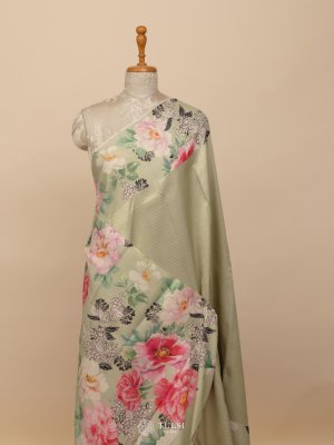 Greige Floral Printed Kanjeevaram Silk Saree