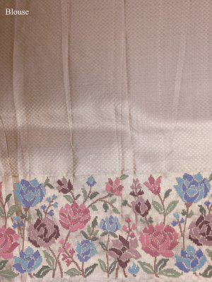 Off White Tissue Kanjeevaram Silk Saree With Embroidered Border
