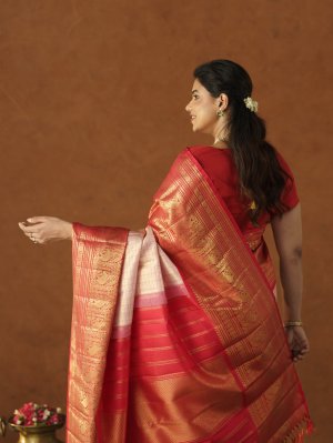 Pinkish Rust Kanjeevaram Pattu Pettu Silk Saree