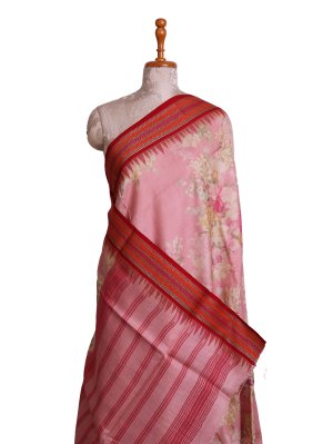 Pastel Pink Printed Tussar Silk Saree with Red Vidarbha Border