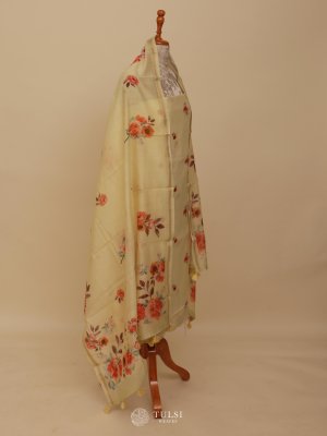 This Pastel Yellow Chanderi Salwar Material captures timeless sophistication with its soft texture and graceful drape. The fabric showcases a delicate floral weave paired with a beautifully patterned dupatta, creating a balanced blend of tradition and style.