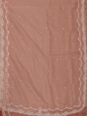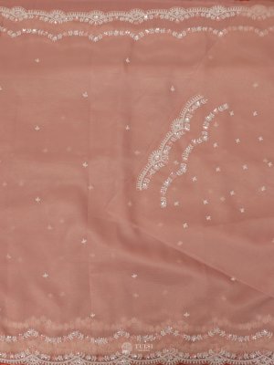 This Peach Crushed Georgette Silk Saree is the perfect blend of elegance and sophistication. The soft crushed texture of georgette silk drapes beautifully, while delicate sequin accents across the body add a subtle shimmer. Its intricately embellished border enhances the saree with refined charm, making it a stunning choice for weddings, receptions, and evening celebrations.