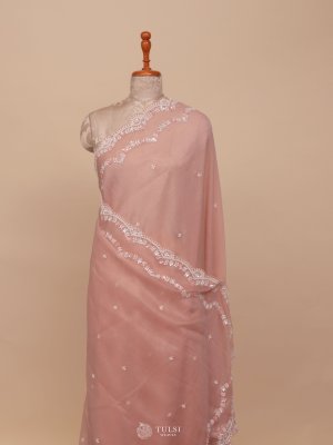 Peach Crushed Georgette Silk Saree