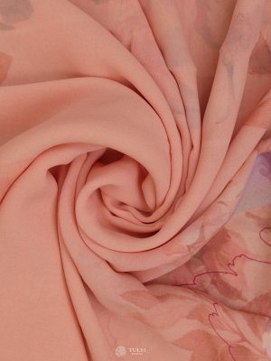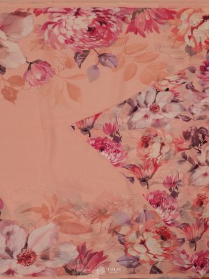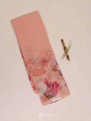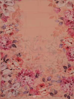 Peach Floral Printed Georgette Silk Saree