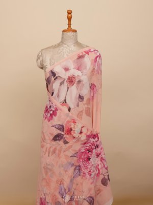 Light Pink Floral Printed Georgette Silk Saree