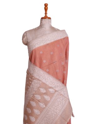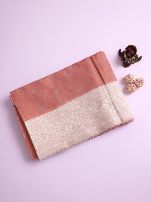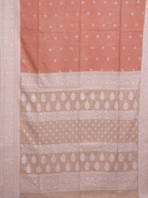 Peach Tissue Munga Tussar Silk Saree with Beige Border