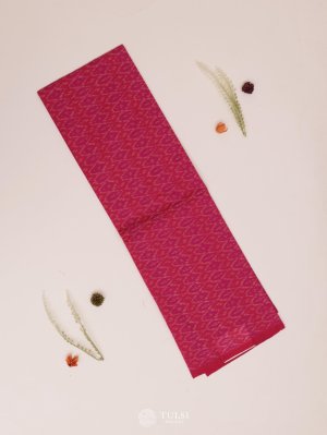 This Peachy Pink Ikat Silk Blouse features a rich, with subtle woven patterns that highlight the traditional Ikat style. The silky texture adds a refined shine, making it perfect for pairing with both classic and contemporary sarees.