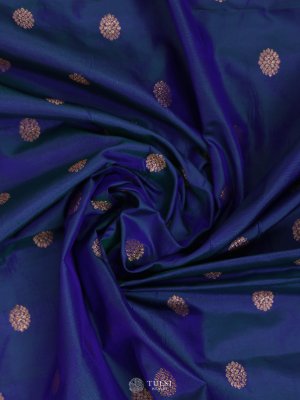 This Peacock Blue Kanjeevaram silk blouse brings a timeless charm with its rich weave and elegant detailing. The fabric features big zari buttas that add a statement touch while keeping the traditional essence intact. Perfect for pairing with both classic and contemporary sarees, this blouse blends heritage craftsmanship with a refined festive appeal.