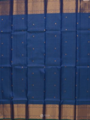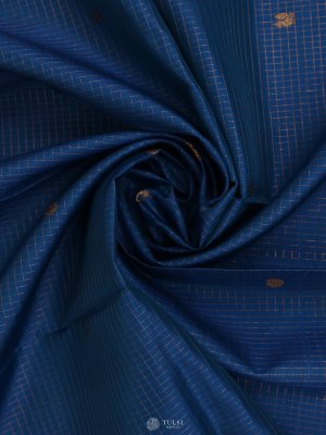 This Peacock Blue Kanjeevaram Silk Blouse Material showcases fine checked patterns accented with delicate golden motifs for a lively yet graceful appeal. The rich silk texture adds a luminous finish, making it perfect to pair with both traditional and contemporary sarees.