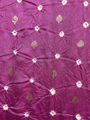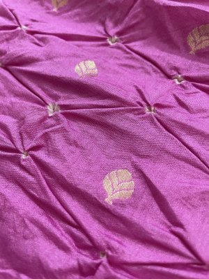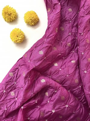 Pink Handwoven Bhandani Silk Blouse with gold zari butta detailing all over