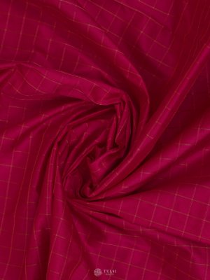 This Pink Kanjeevaram Silk Blouse features a refined checked pattern in subtle gold lines, giving it a classic and versatile appeal. The rich silk fabric adds a smooth sheen, making it perfect to pair with both traditional and contemporary sarees.