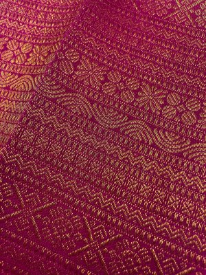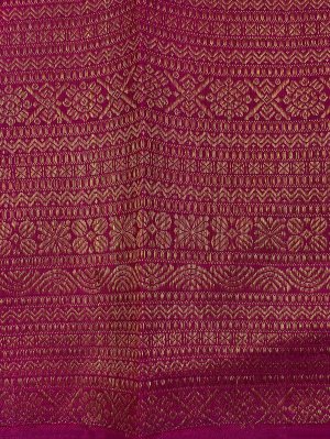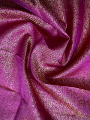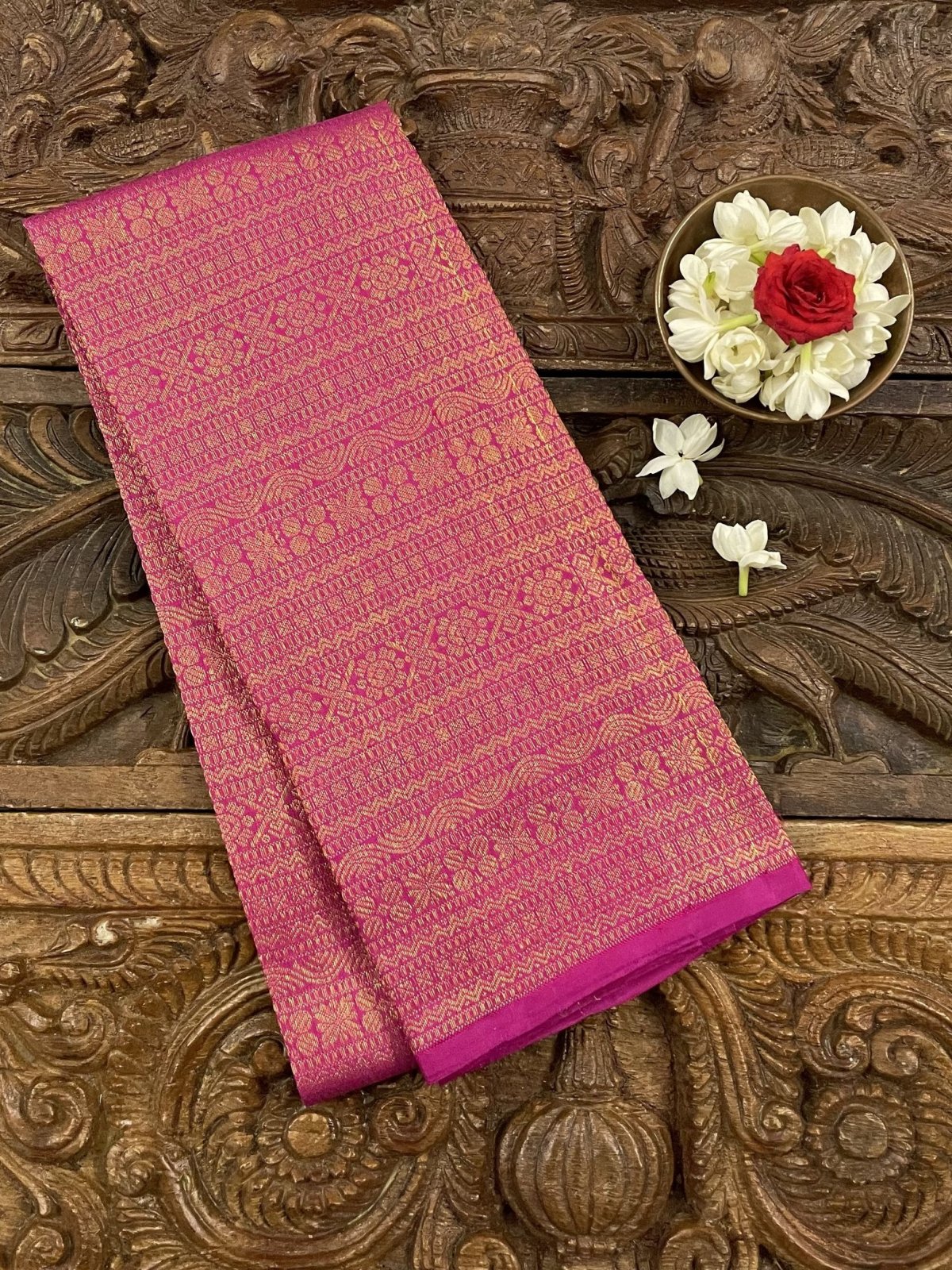 This handwoven pink Kanjeevaram silk blouse is adorned with elaborate gold zari motif detailing all over.