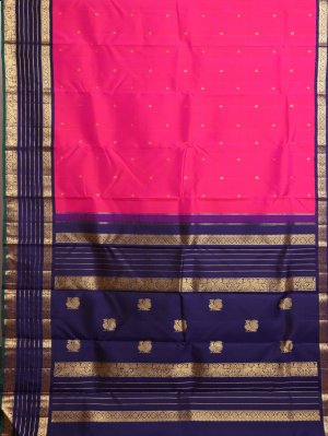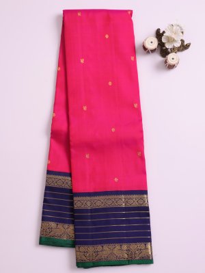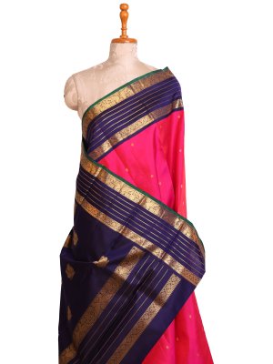 Dark Pink Kanjeevaram Silk Saree With Dark Blue Border
