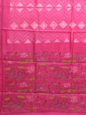Pink Printed Tussar Silk Saree