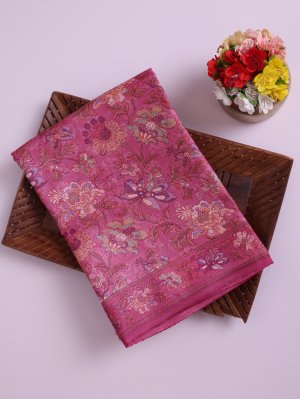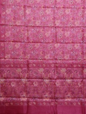Pink Printed Tussar Silk Saree